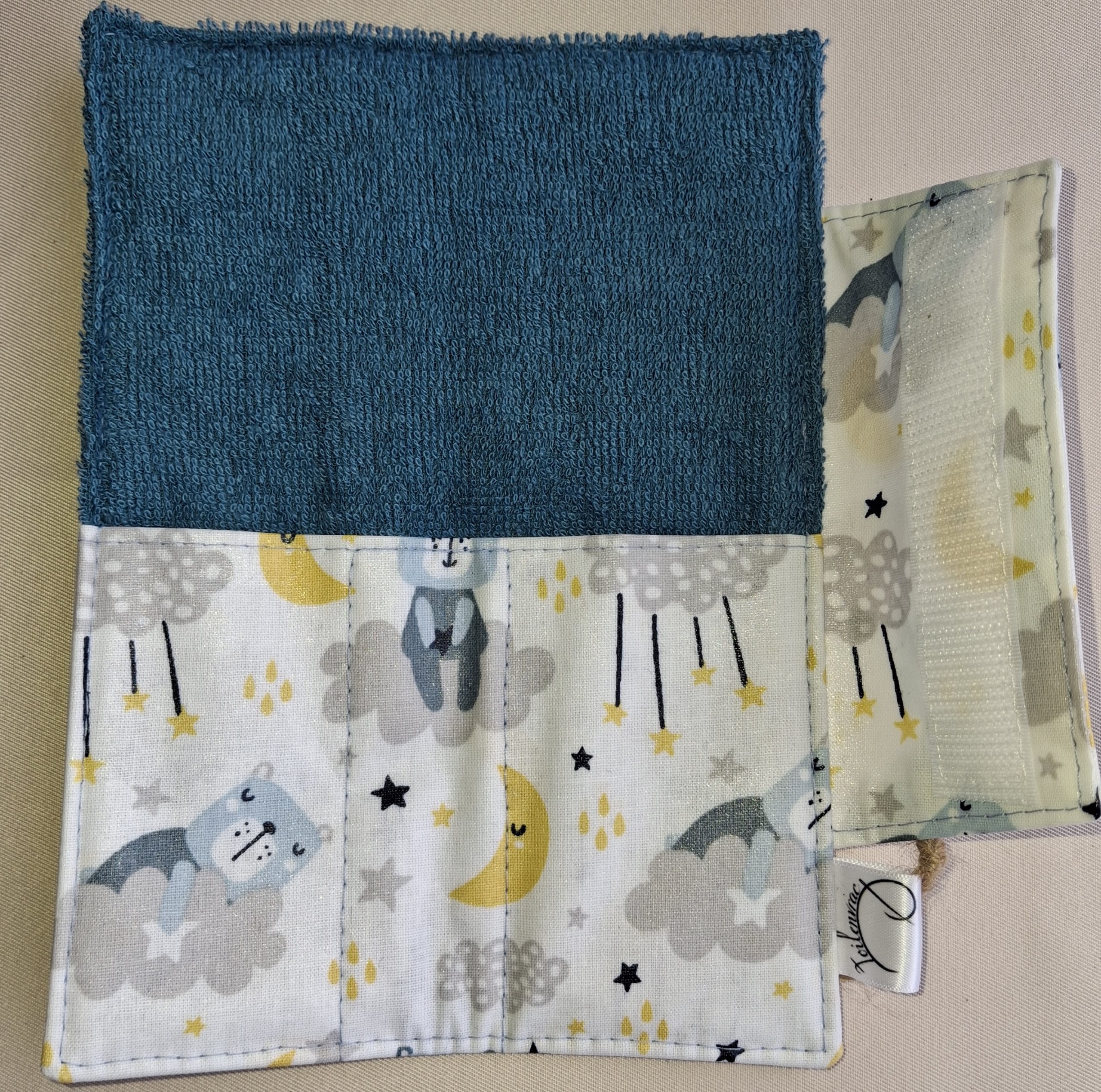 Ce porte brosse à dents enfant 0069 en tissu possède un emplacement pour brosse à dents manuelle et un emplacement pour dentifrice.
