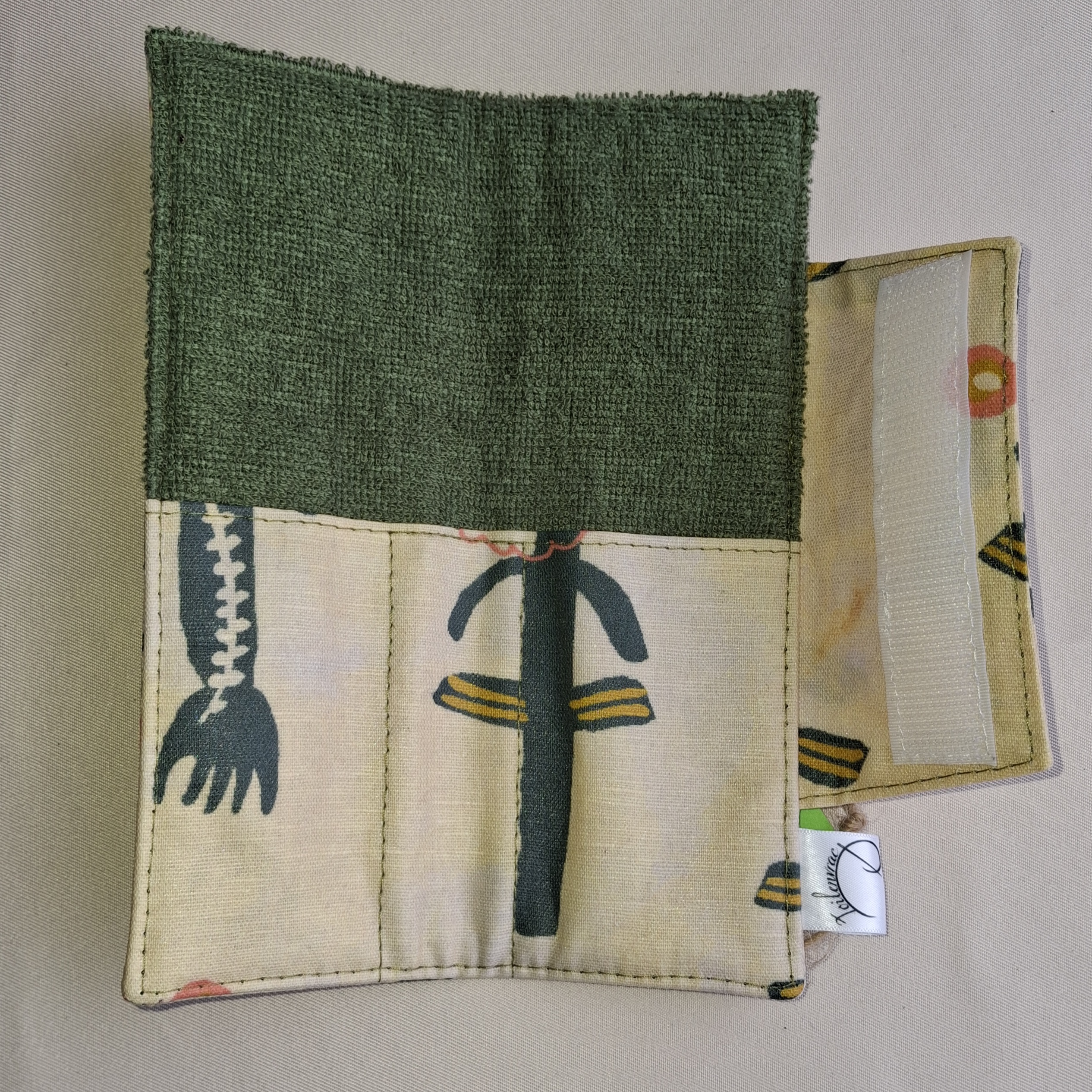 Ce porte brosse à dents enfant 0072 en tissu possède un emplacement pour brosse à dents manuelle et un emplacement pour dentifrice.