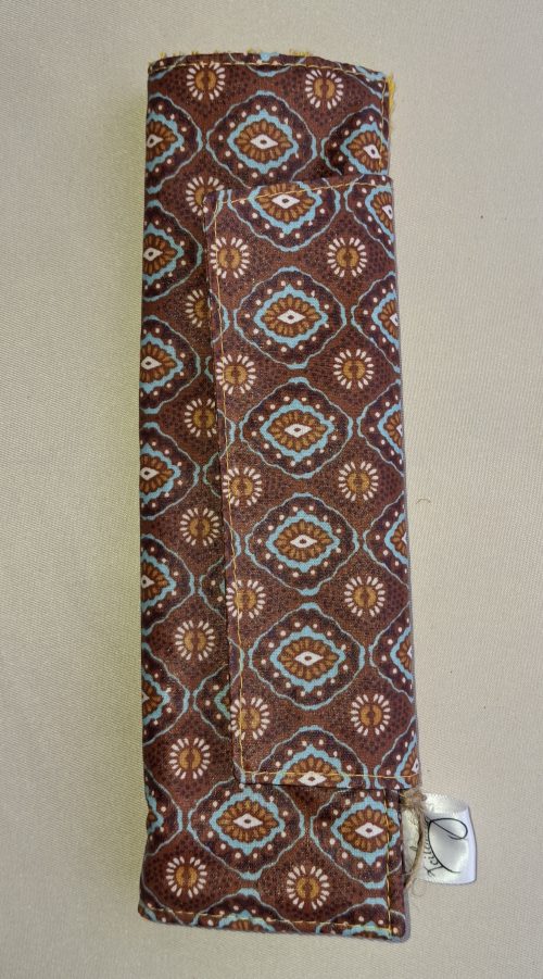 Ce porte brosse à dents 0079 en tissu possède un emplacement pour brosse à dents manuelle et un emplacement pour dentifrice.