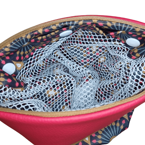 Cette pochette imperméable n°2001, avec filet de lavage intégré clipsable, vous permet de transporter vos accessoires lavables mouillés : lingettes lavables, culottes menstruelles et serviettes hygiéniques rincées mais également un maillot de bain 2 pièces.